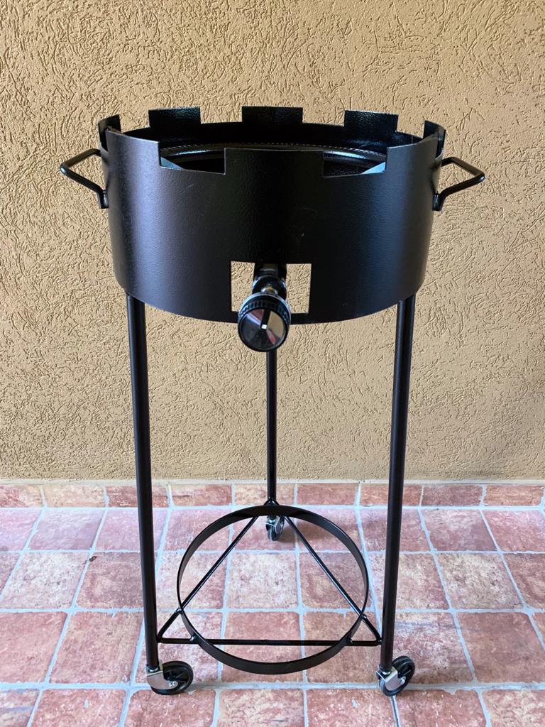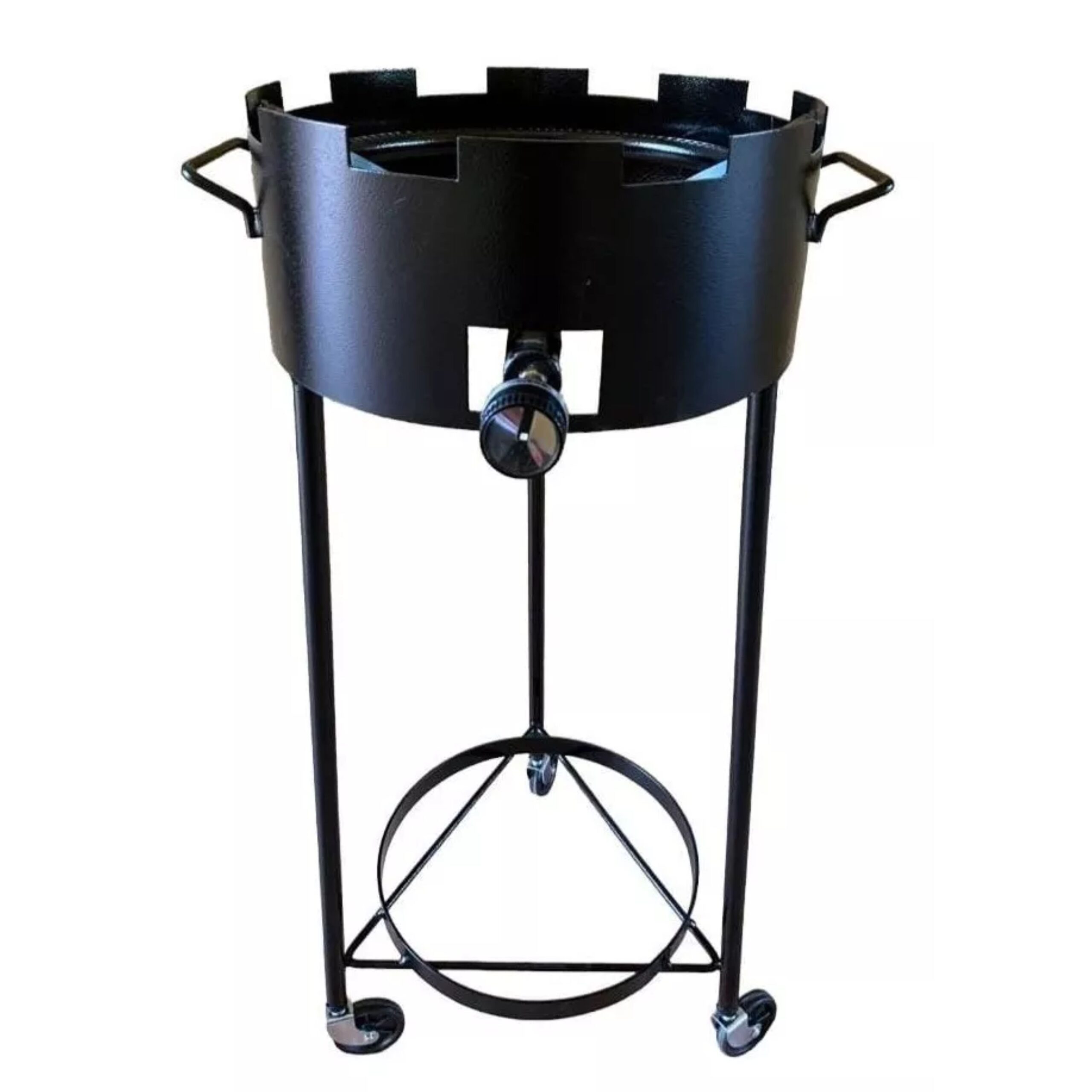 Quemador – Anafe – Mechero para disco de arado original- Con cubre llama- Porta garrafa y ruedas. Color negro