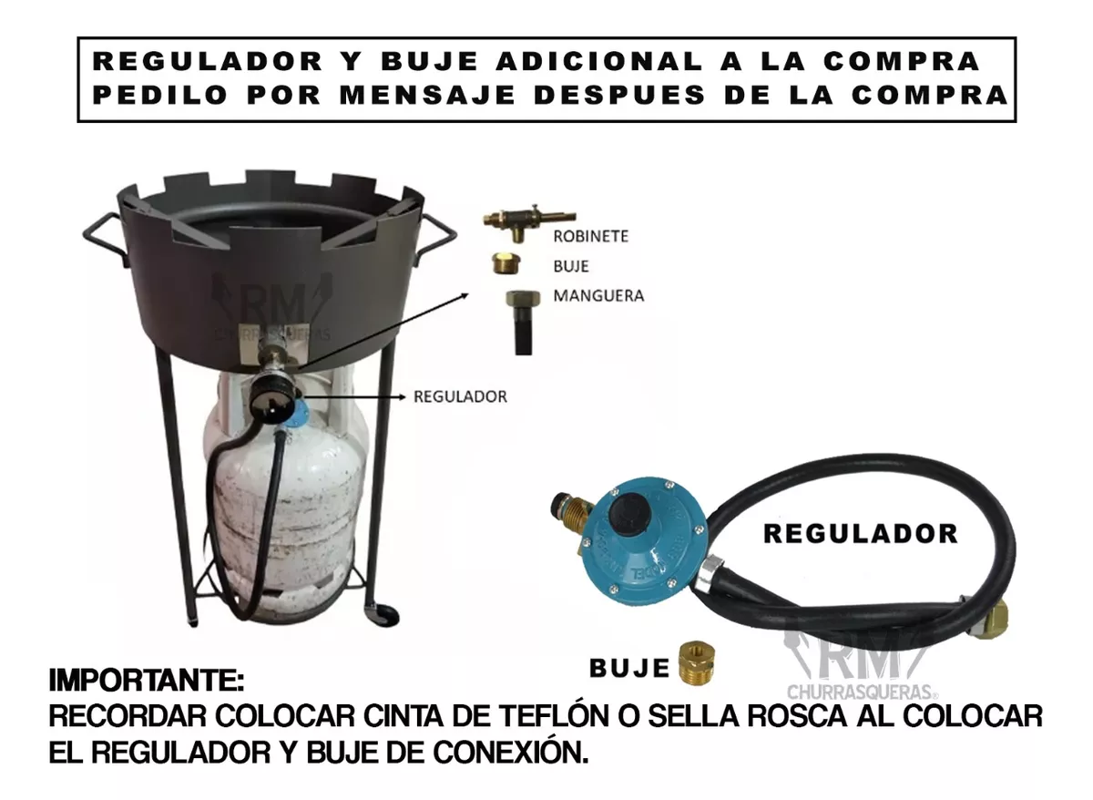 RECORDAR COLOCAR CINTA DE TEFLON O SELLA ROSCA, AL COLOCAR EL REGULADOR Y BUJE DE CONEXION.