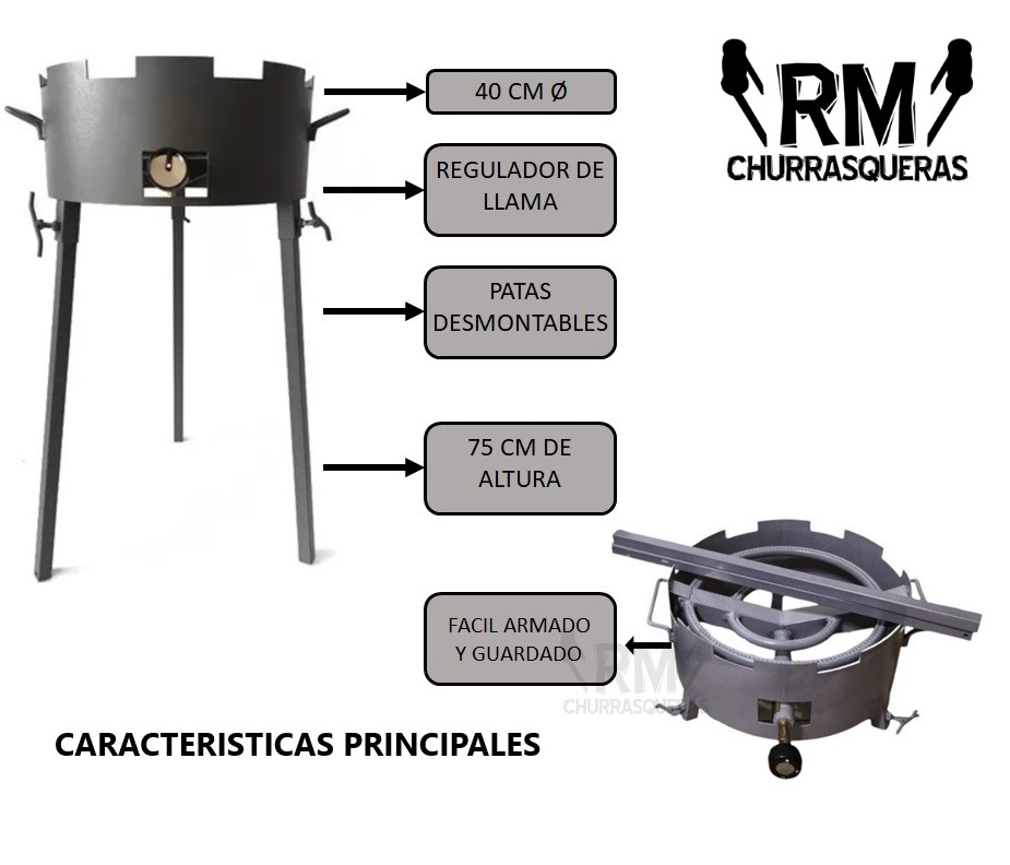 Mechero A Gas Nat. O Envasado – Quemador Patas Desmontables