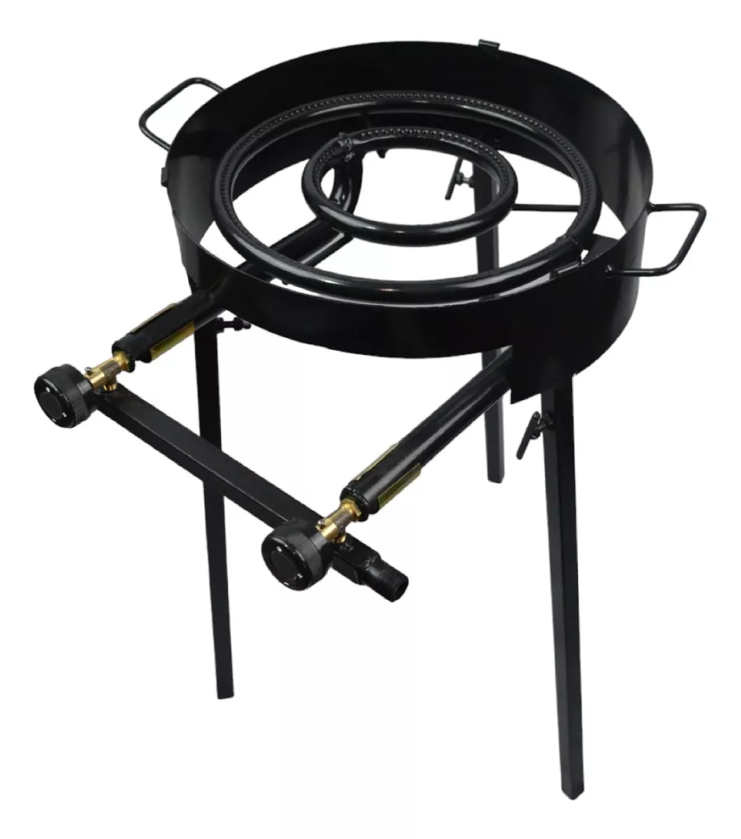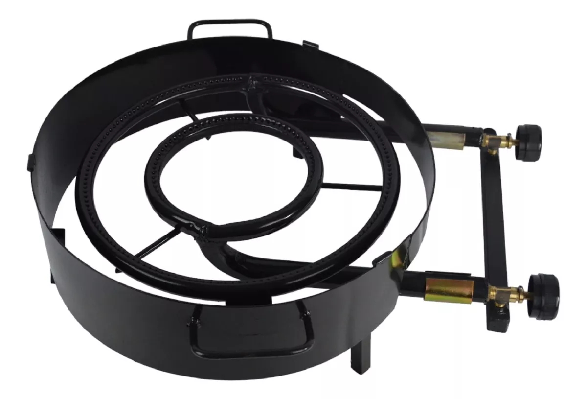 Mechero Anafe doble llave con dos aros, reforzado, pintado con pintura de alta temperatura, con patas desmontables, chapa para corta viento toda la vuelta.