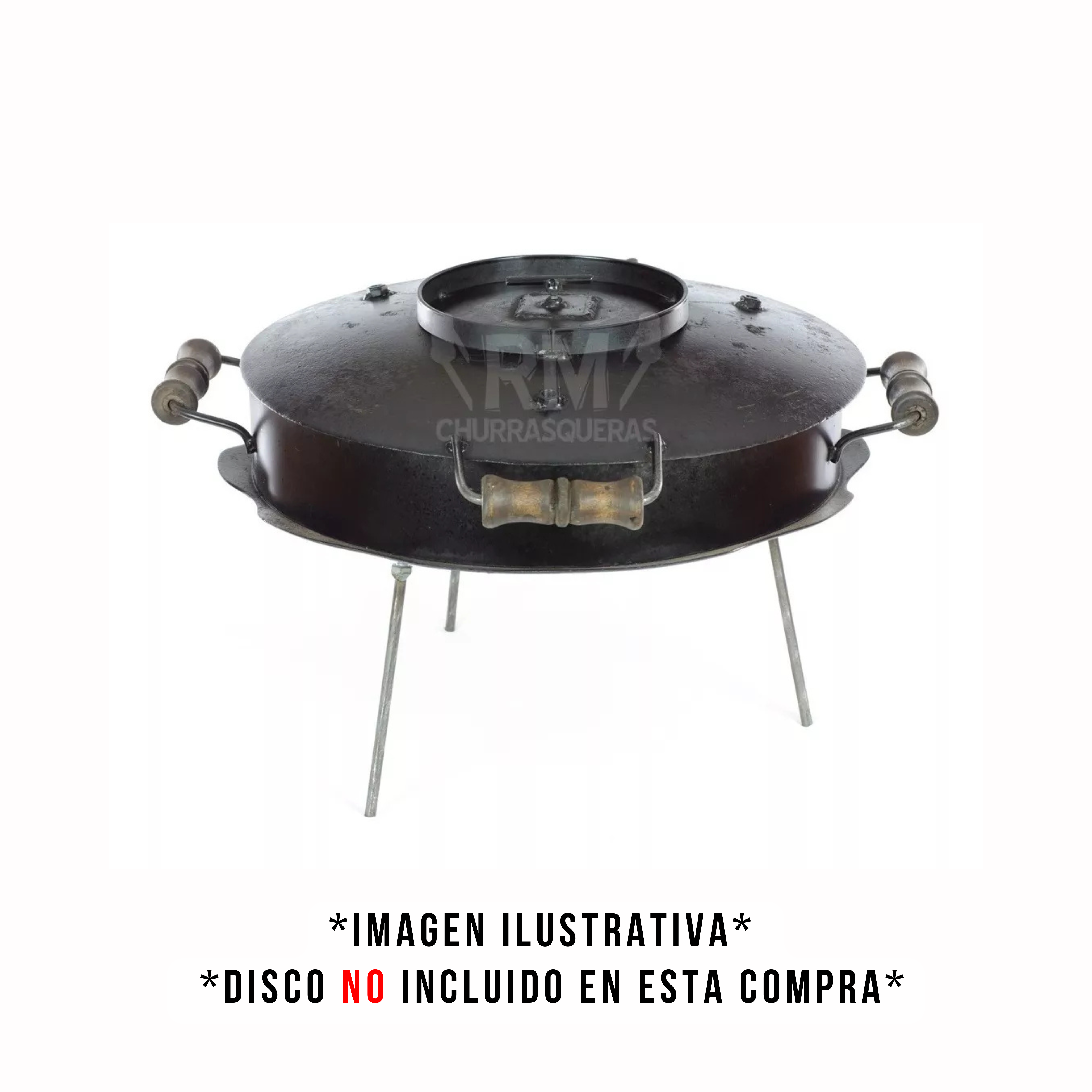 Las patas del disco son desmontables para poder utilizarlo tanto para cocinar a leña como para cocina a gas.